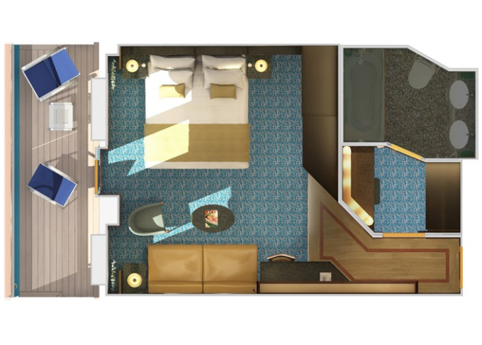 8P - Kajuta s balkónom Cloud 9 Spa 17 m² + balkón 3 m². 11. paluba vpredu. Voľný vstup do Spa a balíček Cloud 9 Spa. 2 296 € 1 148 € za osobu