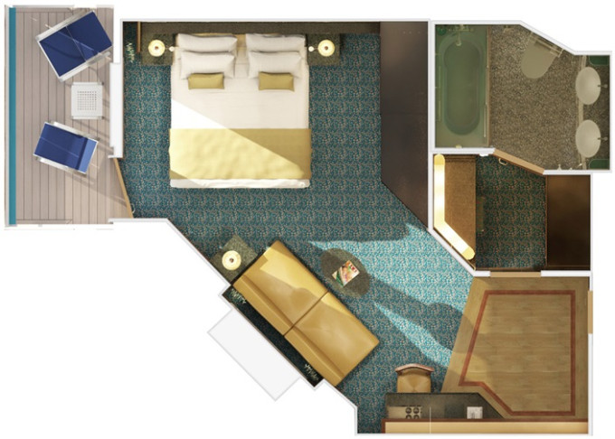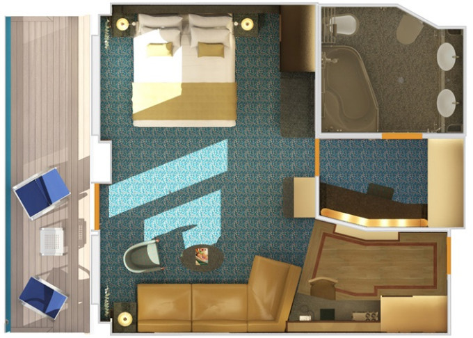 SS - Suite Cloud 9 Spa 25 m² / balkón 6 m². 11. paluba vpredu. Max 3 osoby. Výhody Suite. Voľný vstup do Spa a balíček Cloud 9 Spa. 3 960 € 1 980 € za osobu