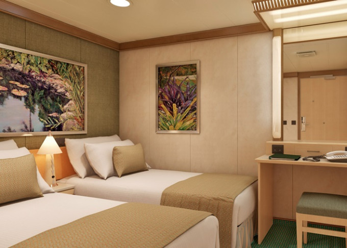 Základné vybavenie všetkých kajút: kúpeľňa so sprchou a WC, TV s plochou obrazovkou, telefón, elektrická zásuvka 110 AC, regulovateľná klimatizácia, postele Carnival Comfort, sušič na vlasy, bezpečnostná schránka, mini chladnička (táto nie je vo všetkých kajutách).