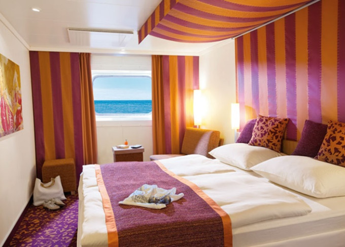| CA - Vonkajšia kajuta PREMIUM / obmedzený výhľad 14-16,5 m². Neotvárateľné okno / obmedzený výhľad. 6. paluba. Max 2 osoby. Cenový model Premium | 1 830 € 915 € za osobu | ||